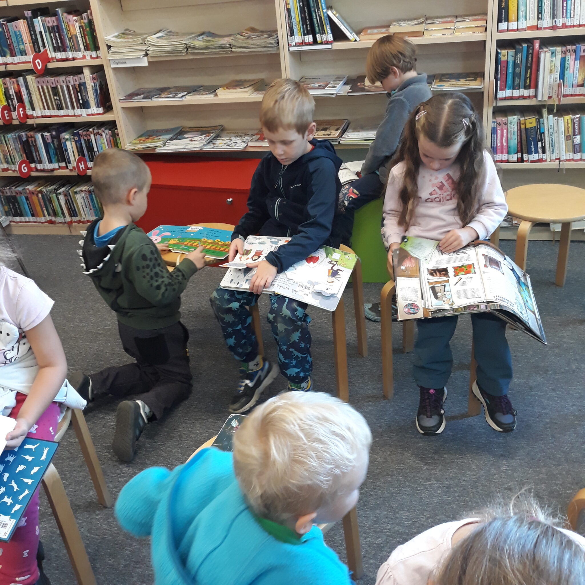 P. knihovnice nás seznámila se systémem půjčování knížek, ukázala nám, jaké knihy si můžeme v knihovně půjčit. Také nám dávala rýmované hádanky.Na závěr jsme si mohli některé knihy prohlédnout.